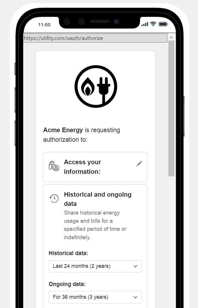 To answer these questions, we developed a first-ever interactive demonstration, the Green Button Consent Toolkit. Users can input different scenarios and see what the customer sees: the accounts to be selected, the amount of historical data to be shared, and disclaimers to be presented. Dozens of "what if" scenarios can be instantly modeled. For utilities wondering about user experience best practices, we've taken care of that too. And for third parties wondering how "scope strings" should be assembled, we've covered that as well. The Consent Toolkit is free to use, so long as you register with your email address.
